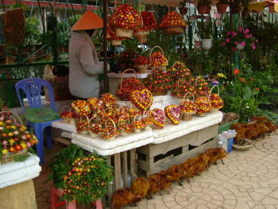 市場の前の広場にも花屋さんがいっぱい。ここはアレンジした花を売っています。